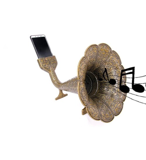 Gramofon Hunisi Telefon Tutuculu Antik Bronz Doğal Hoparlör