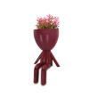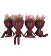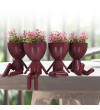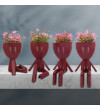 İnsan Figürlü Çiçekli Dekoratif Plastik Saksı Yapay Çiçek 4 Adet (Bordo) HK2565