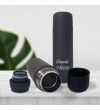 Kişiye Özel Bardak Kapaklı Deri Kılıflı 500 Ml Çelik Termos HK2069