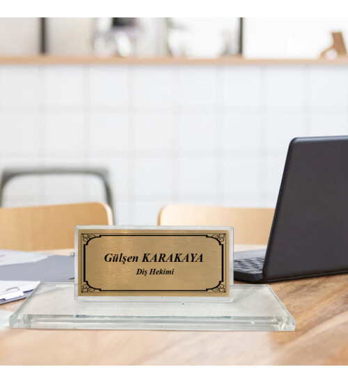 Kristal Masa İsimliği - Altın Tek Kalemli