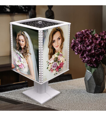 Dönen Abajur Gümüş Taşlı Fotoğraf Takılabilen Gece Lambası (FOTO BASKILI)