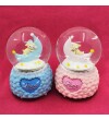 Hilalde Oturan Sevgililer Pembe Minik Kar Küresi