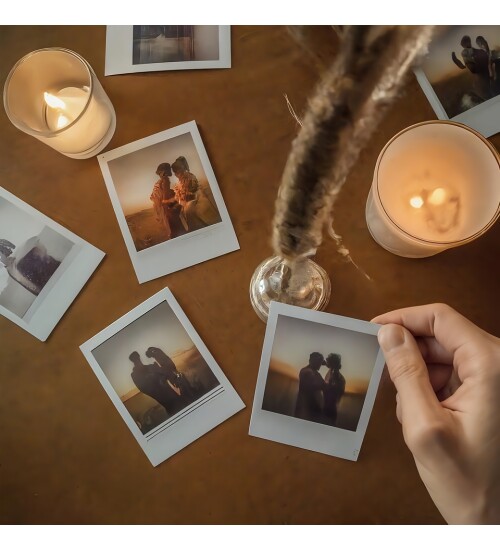 Fotoğraflarınızı 1, kalite 200 gr. fotoğraf kağıdına 6x9 cm ebatında polaroid şekilde basıyoruz,