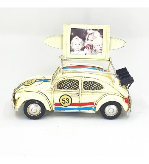 Nostaljik VosVos Beyaz Araba Fotoğraf Çerçeveli ve Kumbaralı