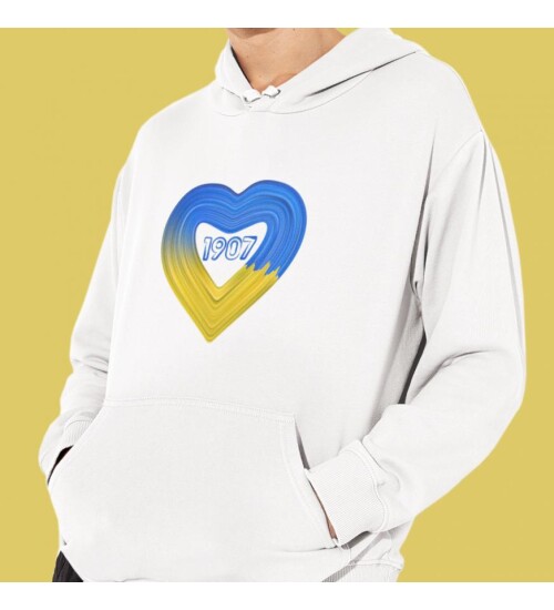 Sarı Lacivert Aşk Baskılı Kapşonlu Beyaz Unisex Sweatshirt HK2167